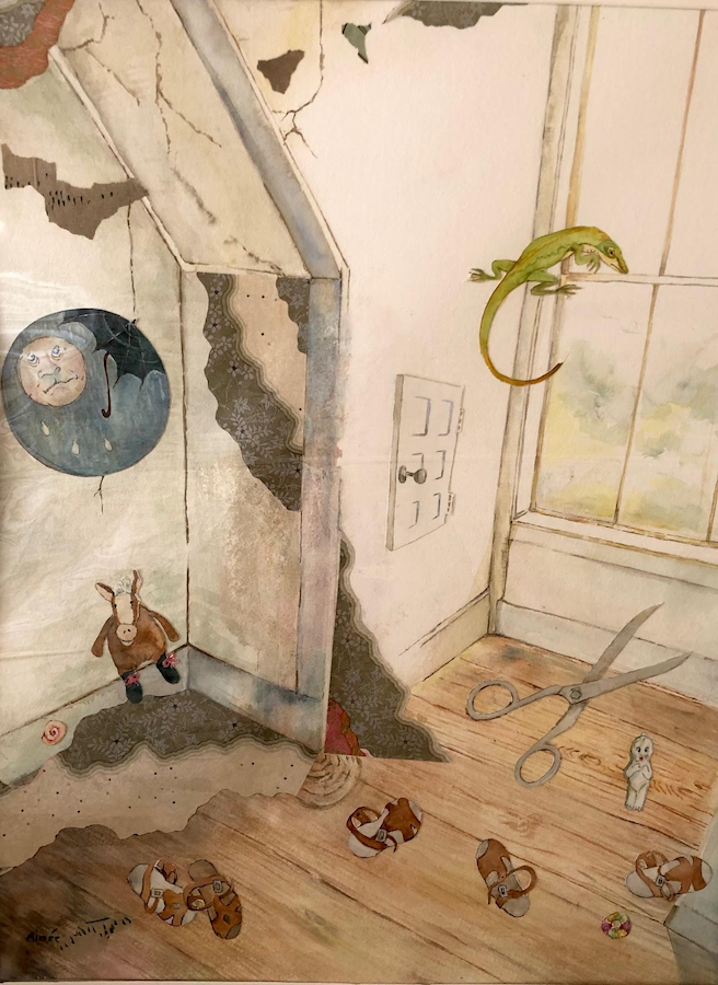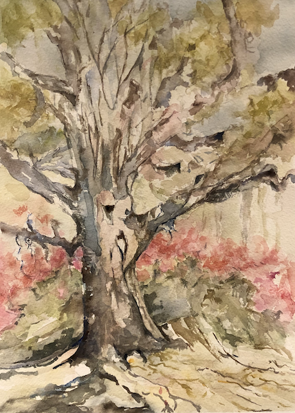I attended college in the 60’s as a literature major. A dear friend gave me a painting set (oil) she had won in an art contest. From there, my literature major floated into an art major. I have been painting since that time. I began using watercolor almost exclusively in the late 80’s, joining Santa Cruz Watercolor Society during its initial assembling. The medium of watercolor has a draw for me due to its nature of fluidity and potential vulnerableness and I am passionate about the SCWS group. Long term participation with sensitive individuals who have various intents and skills centered around watercolor is invigorating. Aimee