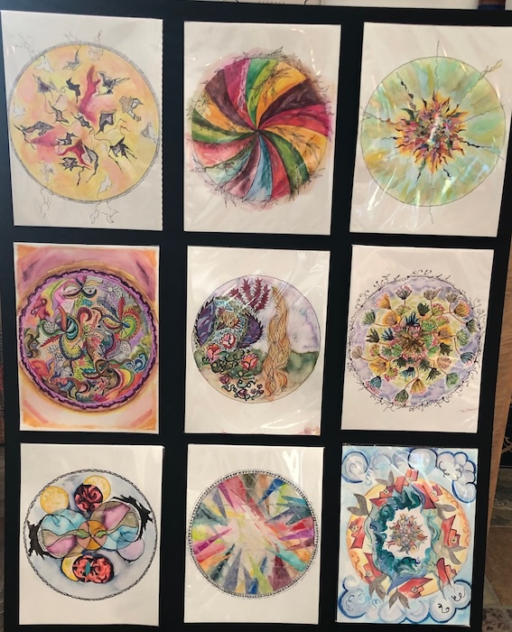 I started painting with watercolor in 2012. I took a chance with a class in watercolor and Mandala through the Capitola Rec Center taught by MIchelle Faia. Over the years and with a teacher who encourage personal exploration, I have found within a circle I can play with color and form and find ways to explore ideas and feelings.